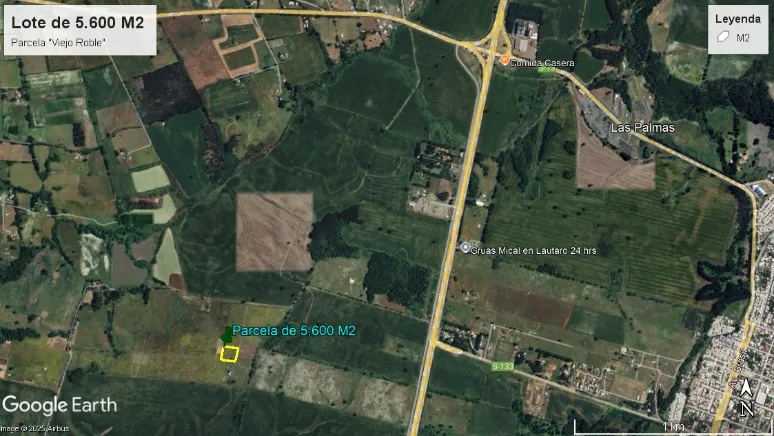 Parcela Viejo Roble Lautaro de 5.600 m². Terreno plano con factibilidad eléctrica y agua de pozo. A 1.800 mts de Ruta 5. Precio: $36.000.000. ¡Oportunidad única!
